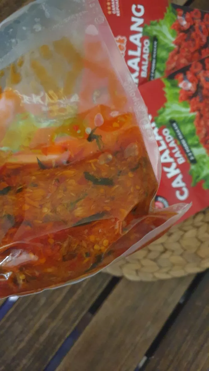 Kualitas: pengemasan baik +aman tidak bocor, sampai tepat waktu, bumbu Sambal melimpah Cakalang nya Mantap … over all rasa Pedasnya Nampool …Enak nya Pas Recommended 👍👍